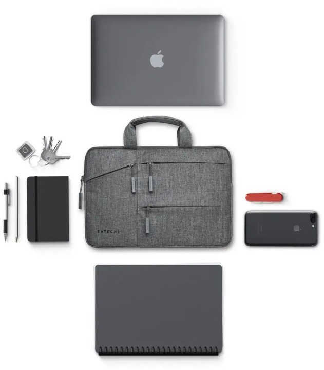 Satechi zapewnia, że funkcjonalność nie musi iść kosztem estetyki. Torba na laptop wyróżnia się eleganckim i minimalistycznym designem, który doskonale komponuje się z nowoczesnymi laptopami. Dzięki eleganckiemu wykończeniu w kolorze szarym, torba przyciąga wzrok i pasuje do każdego stylu – zarówno w biurze, jak i poza nim.