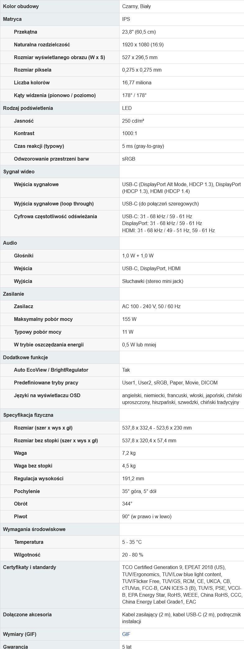 FlexScan EV2490 objęty jest 5-letnią gwarancją producenta na wszystkie komponenty monitora, łącznie z panelem LCD*. Gwarancja EIZO jest o 2 lata dłuższa niż standardowa, 3-letnia gwarancja oferowana przez większość producentów monitorów.