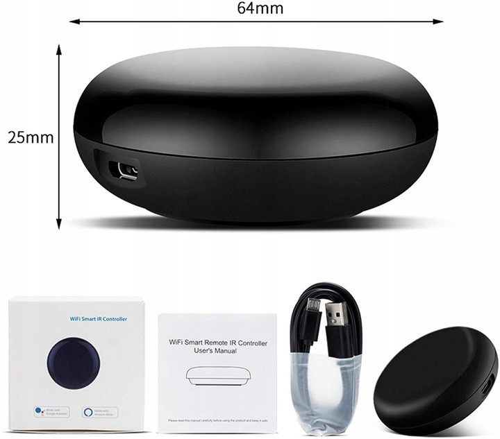 Tuya IR Smart Remote niewielkie urządzenie pełniące funkcje pilota uniwersalnego IR. Moduł pozwala na skopiowanie i zapamiętania sygnał Twojego pilota na podczerwień, a następnie umożliwia sterowanie np. telewizorem lub klimatyzatorem zdalnie za pomocą telefonu lub głosem - wspierana jest integracja z Amazon Alexa oraz Google Home