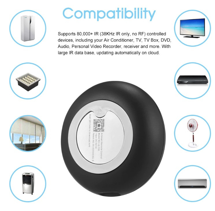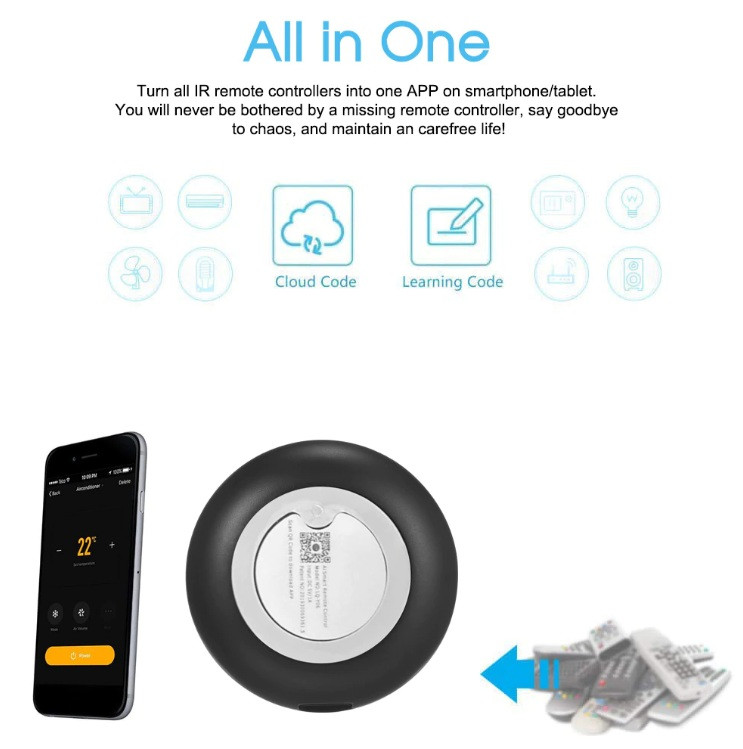 Urządzenie Tuya IR Smart Remote obsługiwane jest darmową aplikacją Tuya Smart Life, dostępnej na urządzenia z systemem Android lub iOS i jeśli tylko posiadasz dostęp do internetu, z dowolnego miejsca na świecie możesz sterować: telewizorem, klimatyzacją, sprzętem audio lub dowolnym urządzeniem, które jest sterowane pilotem na podczernień.