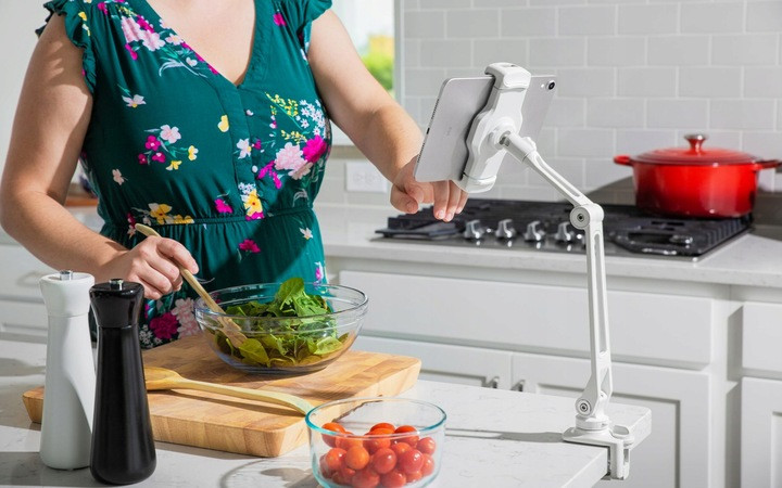 Ustaw iPada na blacie lub przymocuj do szafki kuchennej. Możesz mieć pewność, że niezależnie od tego czy nagrywasz film instruktażowy czy planujesz wielkie gotowanie lub spotkanie towarzyskie z przyjaciółmi – iPad nie będzie narażony na przypadkowe zalanie lub strącenie ze stołu.