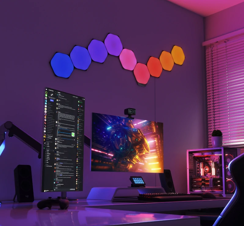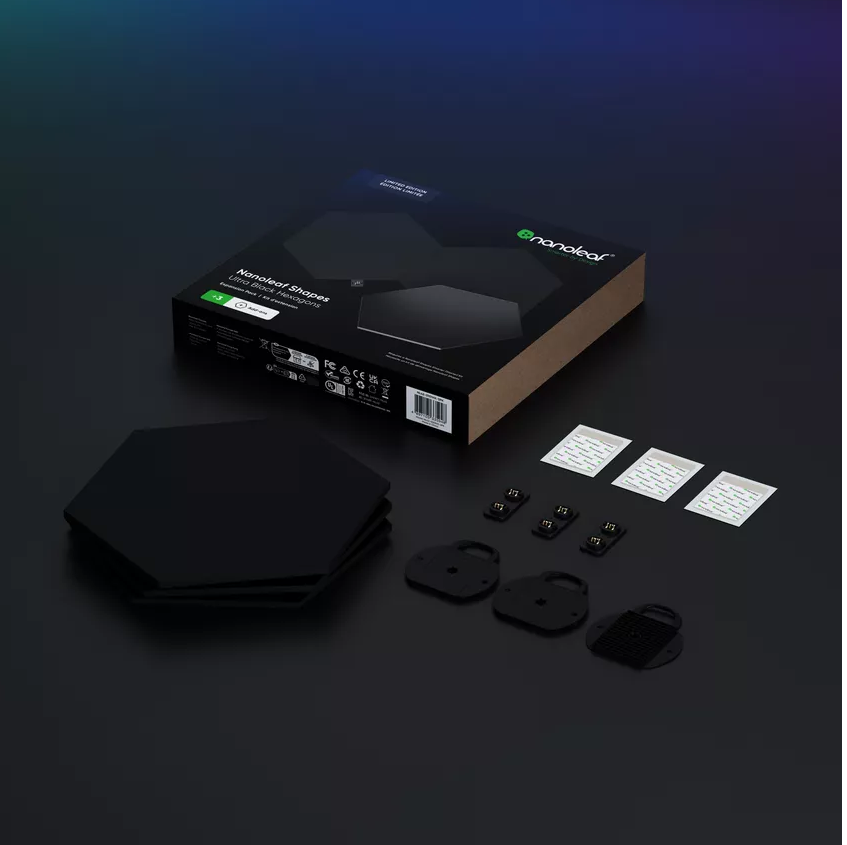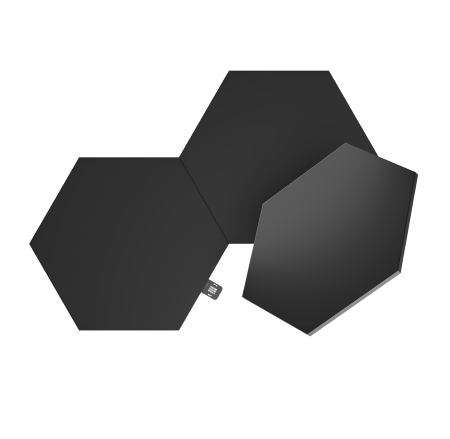 Białe panele Nanoleaf Shapes są super efektowne, ale te czarne… to kosmos! Podświetlona czarna, matowa powierzchnia prezentuje się olśniewająco, nadając wnętrzu nowoczesny wygląd.