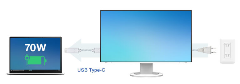 Monitor wyposażono w złącze USB Type-C, które pozwala na wyświetlanie sygnału video, odtwarzanie audio, transmisję sygnału USB, zasilanie podłączonych do niego urządzeń, a nawet transmisję sygnału sieciowego. Taka wszechstronność sprawia, że szybciej i łatwiej podłączysz swój laptop, przemieszczając się pomiędzy różnymi stanowiskami pracy – na przykład między biurem a domem, gdzie łatwo przejdziesz do trybu pracy zdalnej.