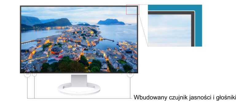 FlexScan EV2495 ma bezramkową konstrukcję – zgodną z minimalistycznym trendem. Występuje w wersji z białą obudową, sprawiając że stanowisko pracy staje się jaśniejsze i przyjemniejsze dla oka. Kable dostarczane są w kolorze odpowiadającym kolorowi obudowy.
