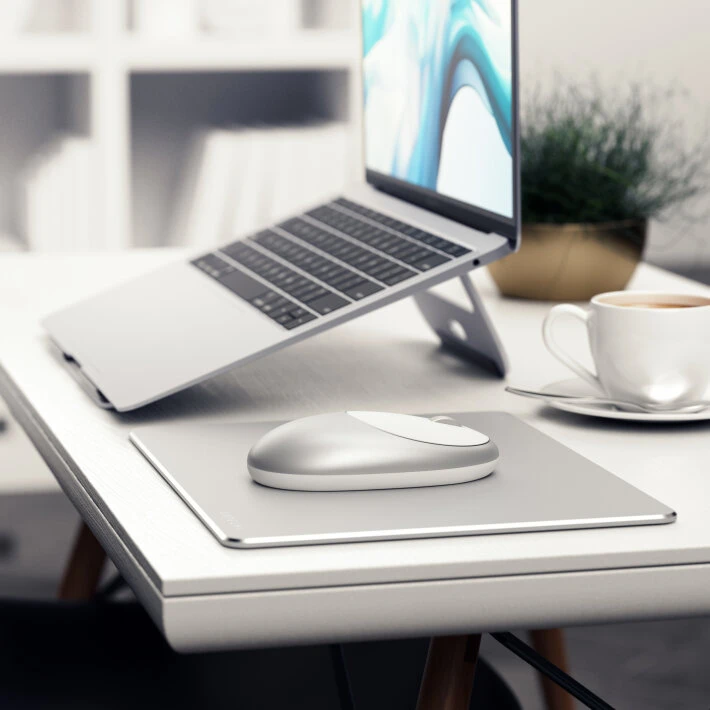 Opływowy kształt myszki idealnie dopasowuje się do dłoni zarówno prawo jak i leworęcznych użytkowników, a jej korpus ze szczotkowanego aluminium świetnie wpisuje się w estetykę nowoczesnego stanowiska pracy.