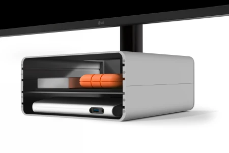 Ci, którzy cenią sobie uporządkowaną powierzchnię roboczą, z pewnością docenią fakt, że Twelve South HiRise Pro ma mnóstwo miejsca do ukrycia hubów, dysków twardych i innych akcesoriów.