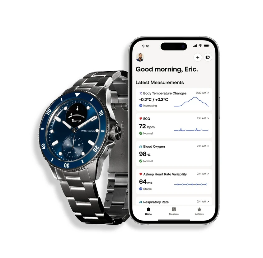 ScanWatch Nova to pierwszy smartwatch, który na bieżąco monitoruje temperaturę ciała i jej wahania, mogące świadczyć o rozwijającej się infekcji lub innych chorobach. Miniaturowy czujnik zmian ciepła oraz czujnik temperatury, w połączeniu z pulsometrem i akcelerometrem, zapewniają wiarygodną analizę wahań temperatury ciała.