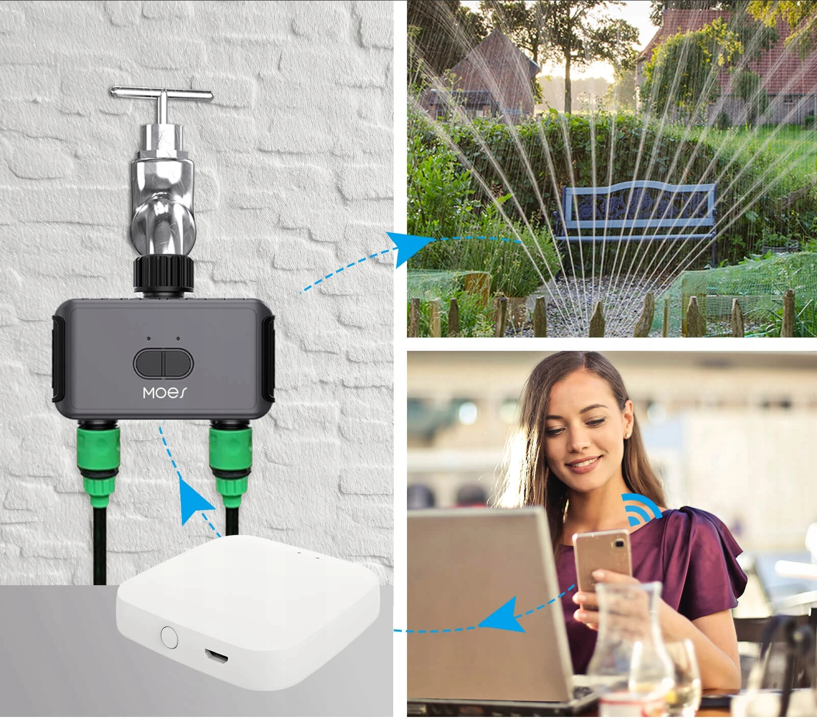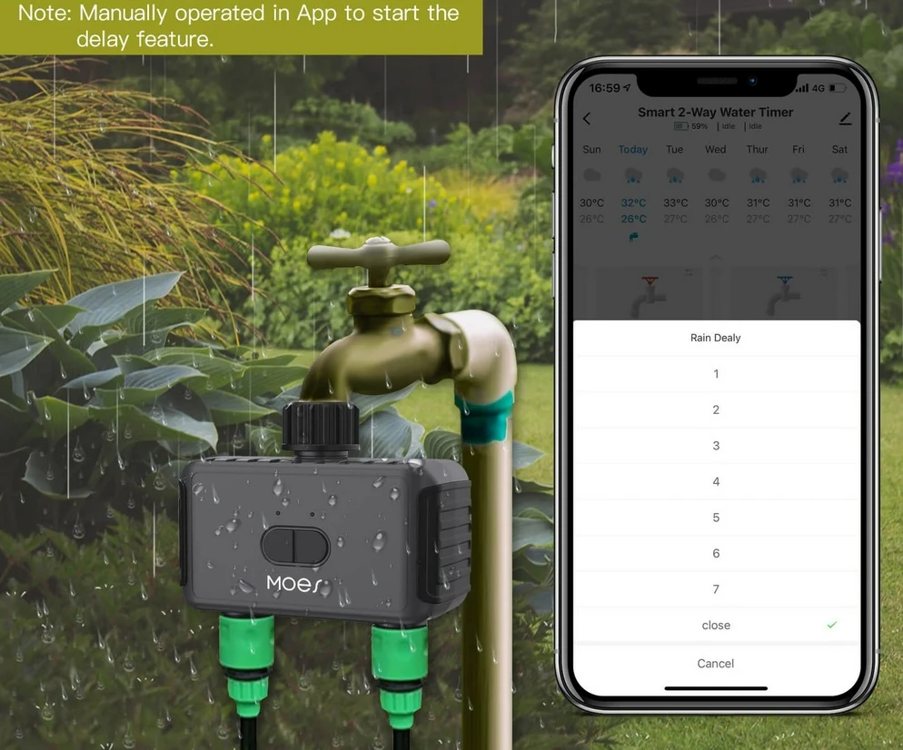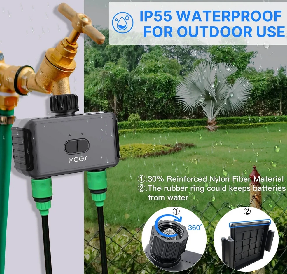 Bez względu na to, czy jesteś w domu, czy poza nim, możesz sterować nawadnianiem za pomocą aplikacji MOES, co pozwala na natychmiastową obsługę i realizację nawadniania bez użycia rąk.